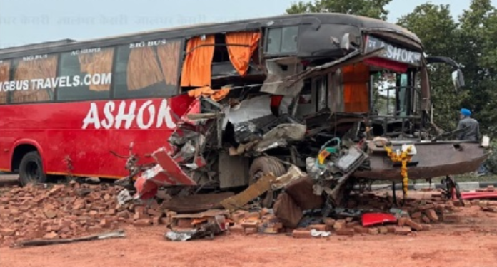 Pb8 live news : जालंधर जम्मू राष्ट्रीय हाईवे पर गांव जल्लोवाल के पास एक पर्यटक बस की ईंटों से भरी ट्रॉली के साथ टक्कर हो जाने के कारण को बस चालक और बस में सवार 3 लोगों की मौत हो गई और बस सवार 11 लोग घायल हो गए। जानकारी अनुसार, उक्त बस जलंधर से आ रही थी और जब बस काला बकरा के पास पहुंची, तो यह राष्ट्रीय हाईवे पर आगे चल रही एक ईंटों से भरी ट्रॉली से टकरा गई। टक्कर इतनी भयानक थी कि बस की टक्कर से ईंटों की भारी ट्रॉली सड़क में पलट गई और यातायात पूरी तरह बंद हो गया। हादसे की सूचना मिलने पर सड़क सुरक्षा बल की गाड़ी इंचार्ज रंधीर सिंह अपनी टीम के साथ हादसे वाले स्थान पर पहुंचे और उन्होंने घायलों को बस से बाहर निकालकर अस्पतालों में पहुंचाया। इस हादसे में बस चालक सतविंदर सिंह पुत्र सुरजीत सिंह निवासी भालख रियासी (जम्मू कश्मीर) और बस में सवार कुलदीप सिंह पुत्र गुरबचन सिंह, गुरबचन सिंह पुत्र चरण सिंह निवासी उत्तम नगर नई दिल्ली, वरिंदर पाल सिंह पुत्र रविंदर निवासी माशीवाड़ा की मौत हो गई है जिनकी लाशों को सड़क सुरक्षा बल द्वारा जे.सी.बी. की मदद से बाहर निकाला गया।
