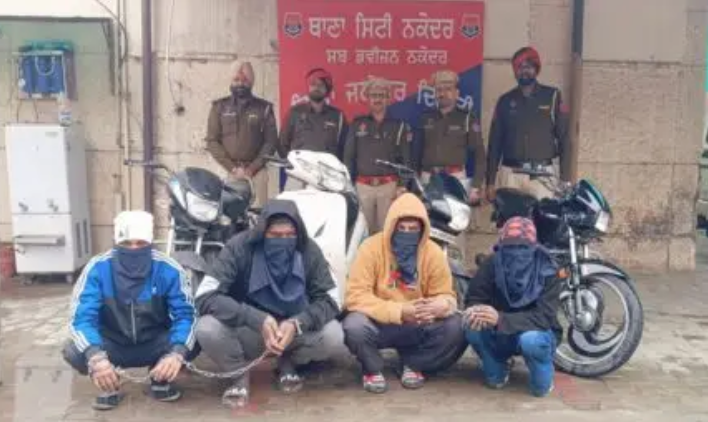pb8 live news : देहात पुलिस के सिटी नकोदर पुलिस स्टेशन ने चार लोगों को गिरफ्तार करके लगभग 4 लाख रुपये के चार चोरी के दोपहिया वाहनों के साथ एक अंतर-जिला वाहन चोर गिरोह का भंडाफोड़ किया है यह गिरोह सक्रिय रूप से पंजाब के कई जिलों में दोपहिया वाहनों को निशाना बनाकर वारदातों को अंजाम दे रहा था जानकारी देते हुए एसएसपी हरकमलप्रीत सिंह खख ने कहा कि ये गिरफ्तारियां संगठित अपराध और असामाजिक तत्वों के खिलाफ एक विशेष अभियान के तहत की गई है। उन्होंने कहा कि इस अंतर-जिला गिरोह ने पूरे पंजाब में वाहन चोरी करने के लिए एक अत्याधुनिक नेटवर्क बनाया था। एसएसपी खख ने कहा कि उनकी गिरफ्तारी क्षेत्र में वाहन चोरी पर अंकुश लगाने के हमारे चल रहे प्रयासों में एक महत्वपूर्ण उपलब्धि है। उन्होंने कहा कि ऑपरेशन की निगरानी पुलिस अधीक्षक (जांच) जसरूप कौर बाठ और डीएसपी नकोदर सुखपाल सिंह ने की। इंस्पेक्टर अमन सैनी, एस.एच.ओ सिटी नकोदर और ए. एस.आई राजिंदर कुमार के नेतृत्व में एक विशेष टीम ने एक गुप्तसूचना के बाद 1 फरवरी को गिरफ्तारियां की। बरामद किए गए वाहनों में एक स्प्लेंडर प्लस मोटरसाइकिल जिसका पंजीकरण नंबर पीबी-08-ईटी-9108, एक पैशन प्लस मोटरसाइकिल जिसका पंजीकरण नंबर पी बी-08-बी जी-8385, एक सीडी डिलक्स मोटरसाइकिल और एक एक्टिवा स्कूटर शामिल है, जिनमें से बाद वाले दो को पता लगने के बाद बचने के लिए उनकी पंजीकरण प्लेटें हटा दी गई। पकड़े गए आरोपियों की पहचान मनप्रीत सिंह पुत्र कमलजीत सिंह निवासी शरकपुर कॉलोनी, नकोदर, जसविंदर सिंह पुत्र मलकीत राम निवासी गांव तलवन, अभिषेक कुमार पुत्र सोमनाथ निवासी गांव तलवन और रमन पुत्र रतन लाल निवासी मोहल्ला गुग्गा साई, नकोदर के तौर पर हुई है।। जांच में पता चला कि चारों आरोपी आदतन अपराधी है, जिनके खिलाफ अलग-अलग पुलिस स्टेशनों में कई मामले दर्ज हैं। उन्होंने कहा कि मुख्य आरोपी जसविंदर सिंह के खिलाफ डकैती और आपराधिक साजिश के आरोप सहित चार आपराधिक मामले दर्ज है।