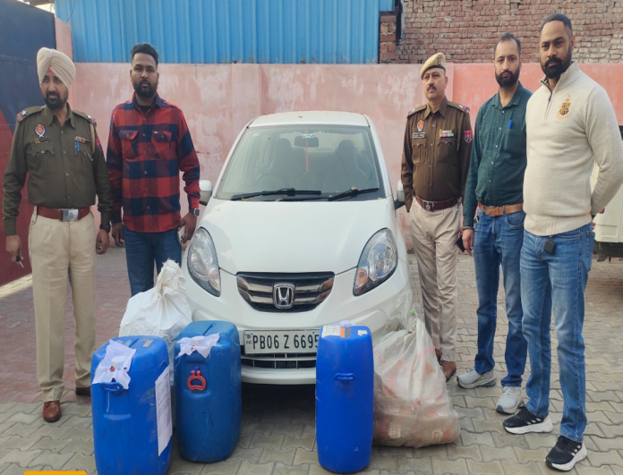 जालंधर कमिश्नरेट पुलिस ने बड़ी कार्रवाई करते हुए बड़ी सफलता हासिल की है। पुलिस कमिश्नर स्वपन शर्मा के नेतृत्व में जालंधर कमिश्नरेट पुलिस ने शहर में एक नशा तस्कर को 14 पेटी अवैध शराब के साथ गिरफ्तार किया है। आरोपी की पहचान सूरज चंद्र पुत्र सुभाष चंद्र निवासी न्यू दशमेश नगर जालंधर के रूप में हुई है। पुलिस कमिश्नर ने जानकारी देते हुए बताया कि पुलिस को सूचना मिली थी कि सूरज चंद्र नहर पुली कोट सिद्दीकी के आसपास अवैध शराब बेच रहा है। सूचना पर तुरंत कार्रवाई करते हुए पुलिस ने आरोपी को सफेद रंग की होंडा अमेज कार के साथ गिरफ्तार कर लिया। स्वपन शर्मा ने बताया कि पुलिस ने वाहन की तलाशी के दौरान विभिन्न लेबल की कुल 14 पेटी अवैध शराब बरामद की। पुलिस कमिश्नर ने बताया कि आरोपियों के खिलाफ आबकारी अधिनियम की धारा 61-1-14 के तहत पुलिस स्टेशन डिवीजन नंबर 02, जालंधर में FIR नंबर 2 तारीख 26.01.2025 दर्ज की गई है। पुलिस द्वारा मामले की आगे जांच की जा रही है।