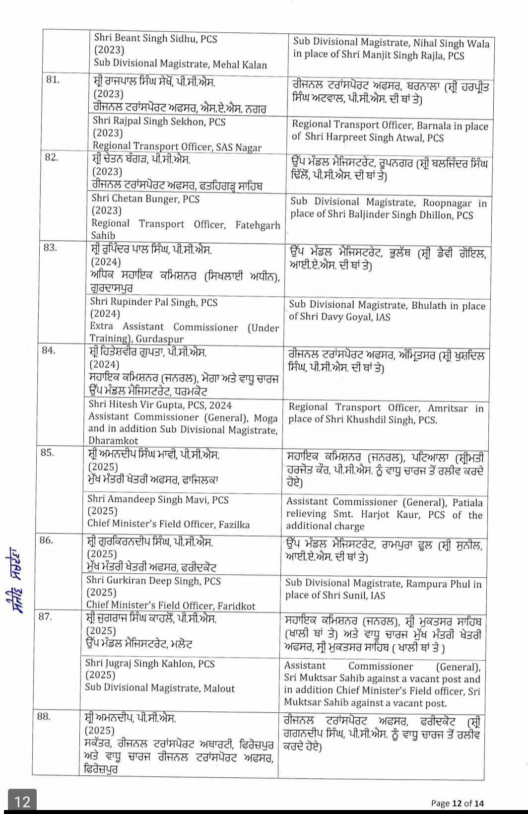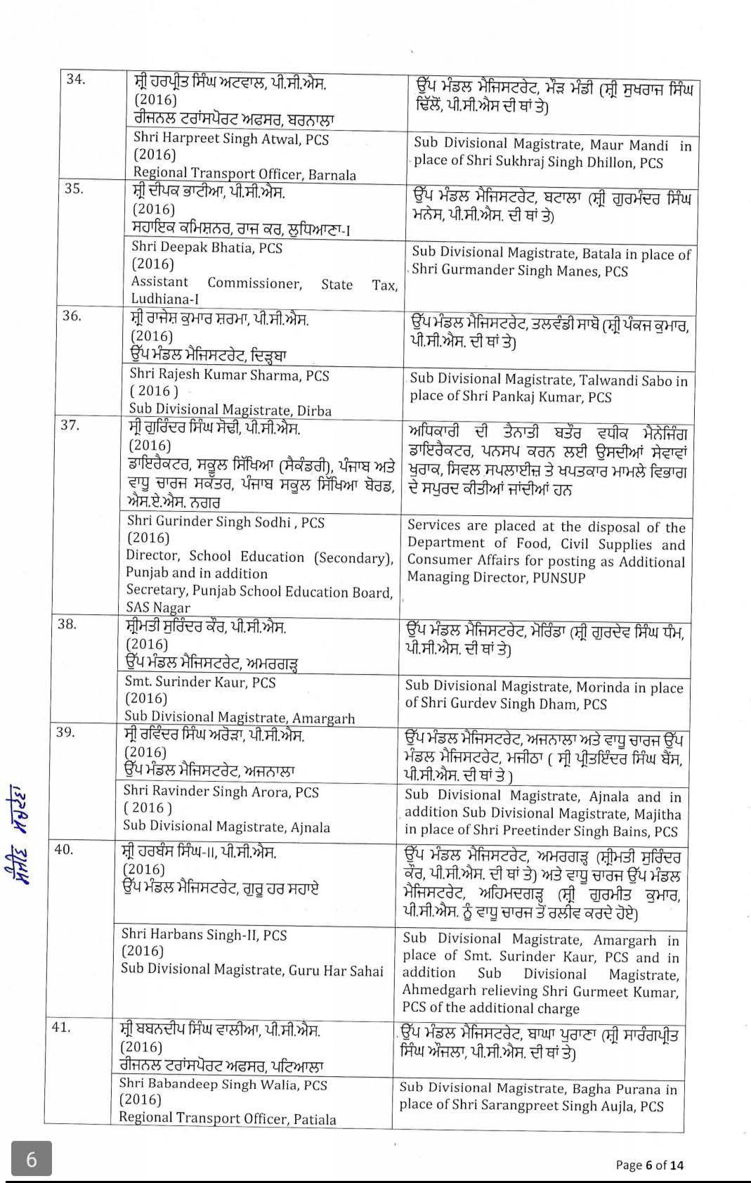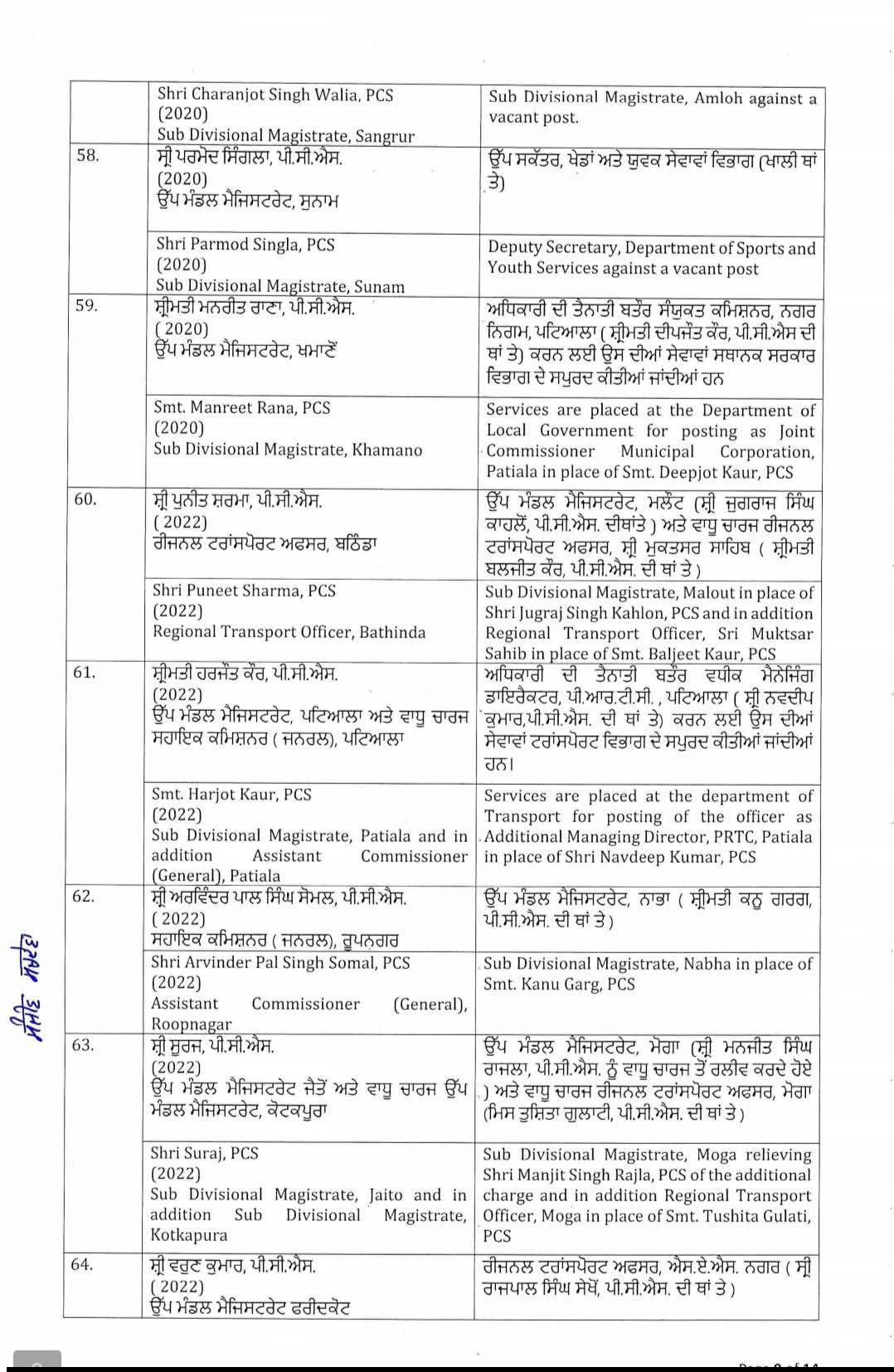 आईएएस राजदीप सिंह बराड़ को अतिरिक्त उपायुक्त (शहरी विकास) बठिंडा और अतिरिक्त मुख्य प्रशासक, बठिंडा विकास प्राधिकरण नियुक्त किया गया है। वहीं आईएएस रुबिंदरजीत सिंह बराड़ को अतिरिक्त मुख्य कार्यकारी अधिकारी, पंजाब ब्यूरो ऑफ इन्वेस्टमेंट प्रमोशन के साथ अतिरिक्त सचिव, एनआरआई मामले और स्थानीय सरकार की जिम्मेदारी दी गई है।