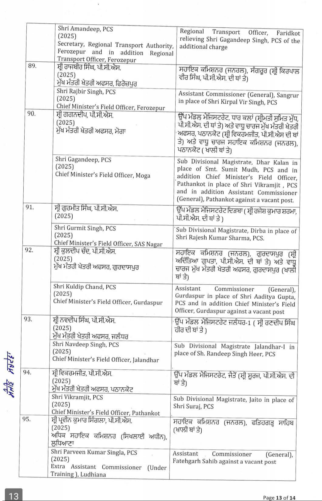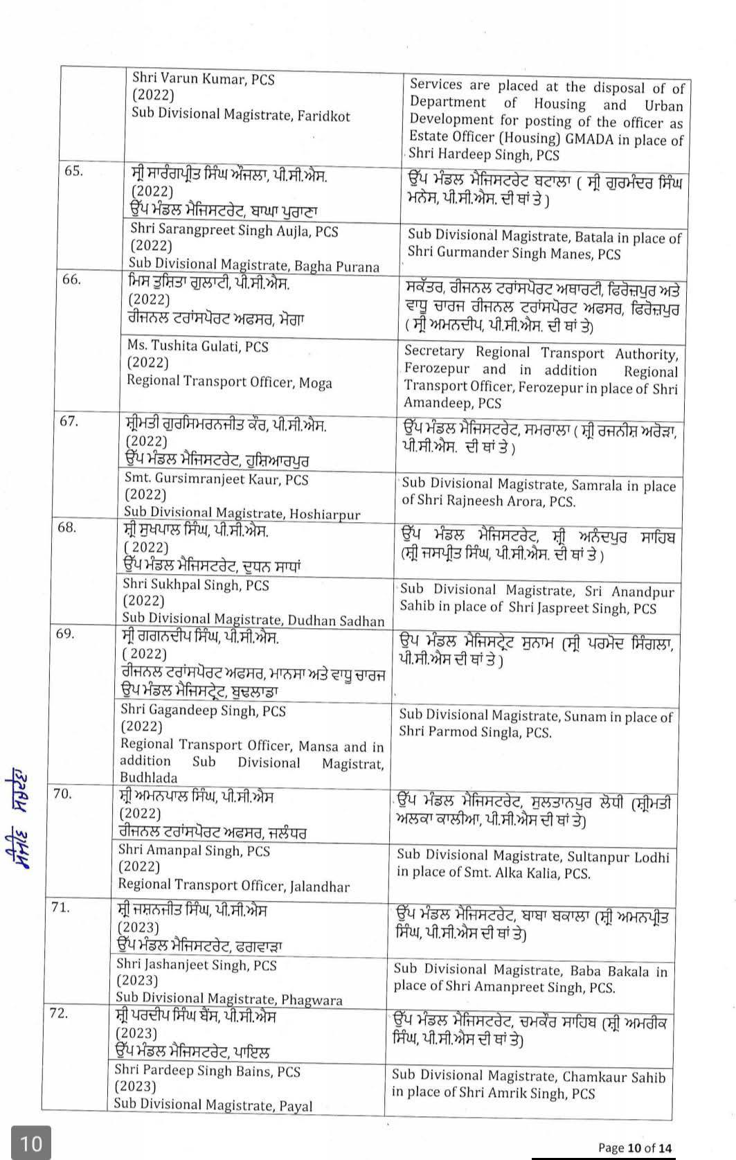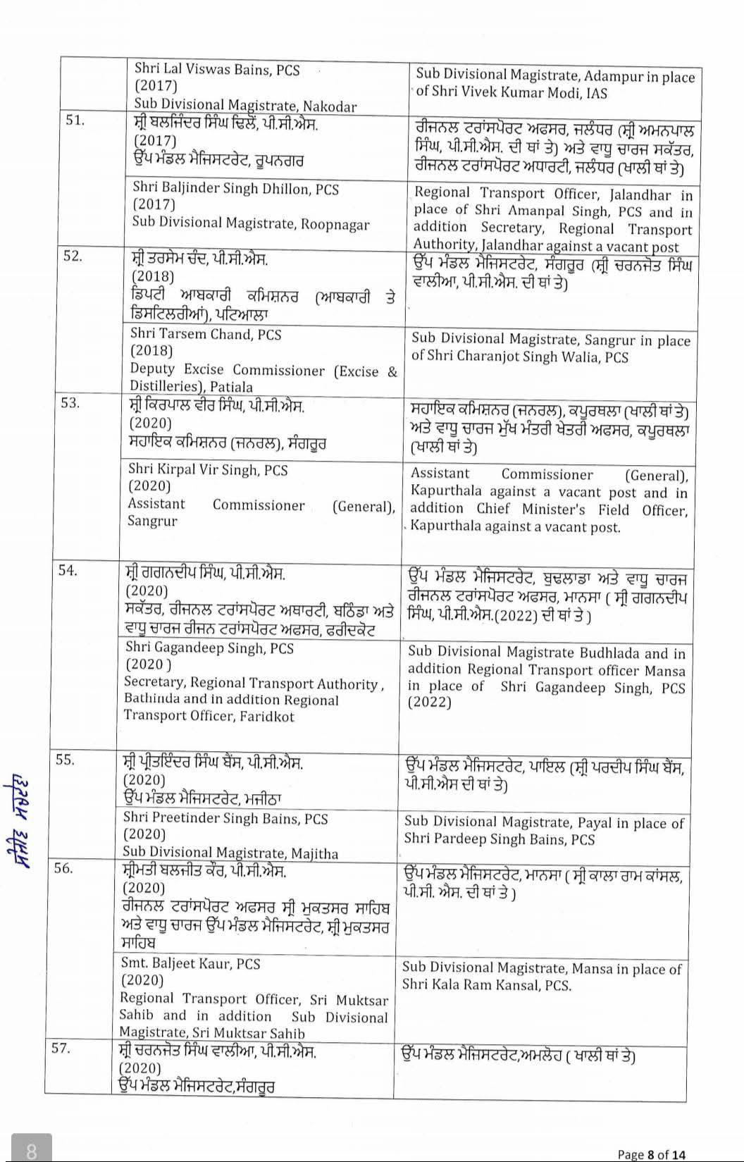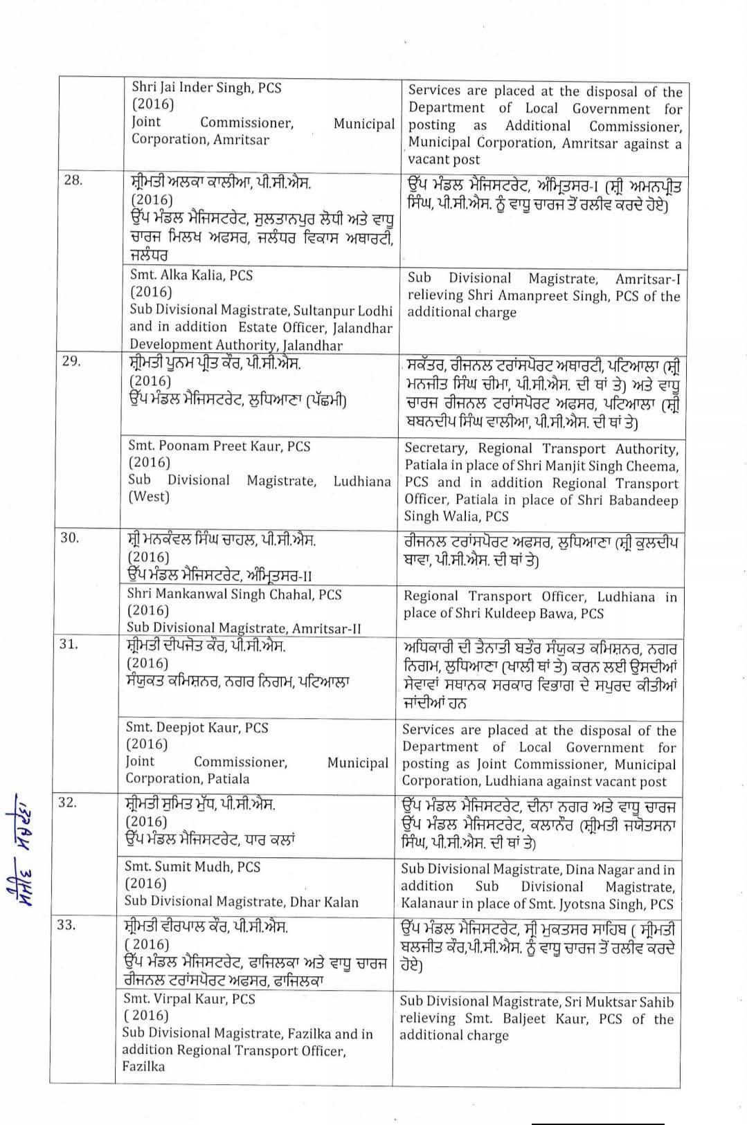 आईएएस राजदीप सिंह बराड़ को अतिरिक्त उपायुक्त (शहरी विकास) बठिंडा और अतिरिक्त मुख्य प्रशासक, बठिंडा विकास प्राधिकरण नियुक्त किया गया है। वहीं आईएएस रुबिंदरजीत सिंह बराड़ को अतिरिक्त मुख्य कार्यकारी अधिकारी, पंजाब ब्यूरो ऑफ इन्वेस्टमेंट प्रमोशन के साथ अतिरिक्त सचिव, एनआरआई मामले और स्थानीय सरकार की जिम्मेदारी दी गई है।