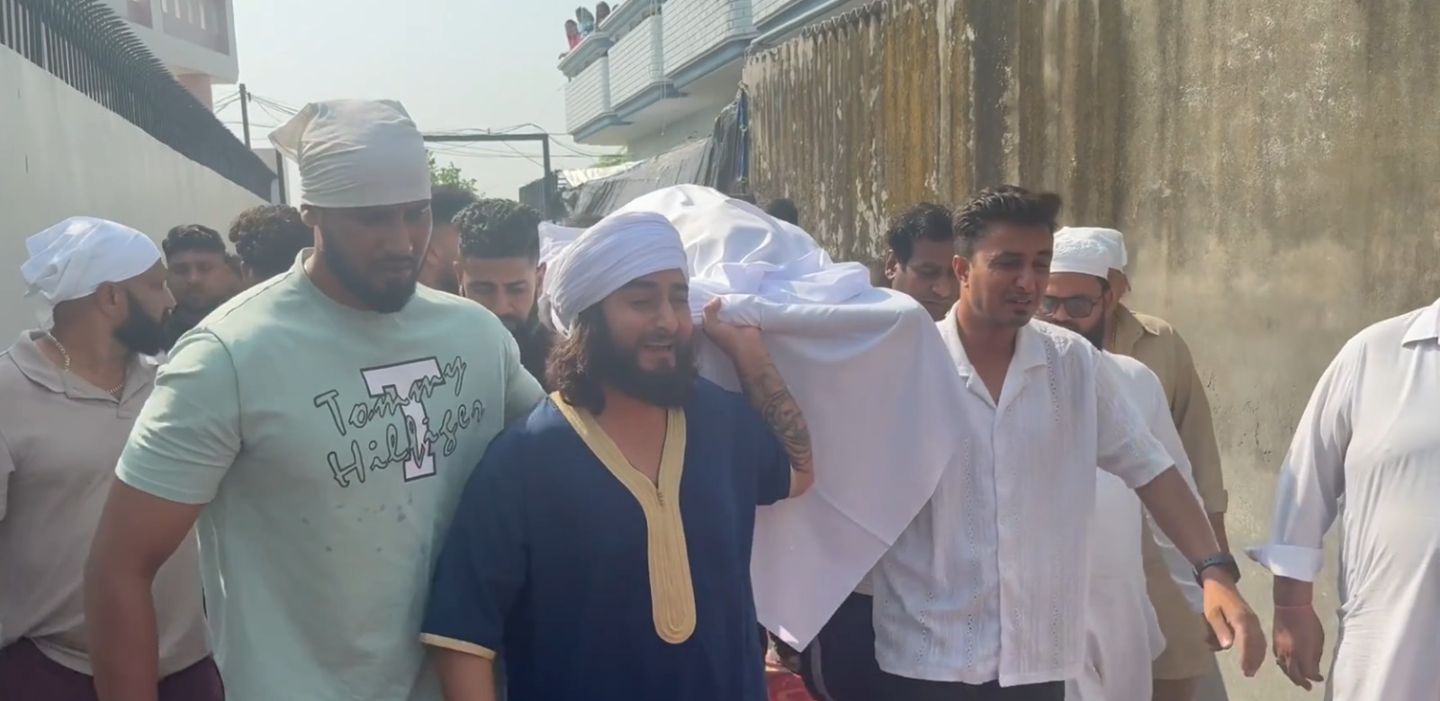 मशहूर पंजाबी सिंगर खान साब के पिता इकबाल मुहम्मद (70) को इस्लामिक रीति-रिवाजों के साथ उनके पैतृक गांव भंडाल दोना में सुपुर्द-ए-खाक किया गया। इस मौके पर बड़ी संख्या में लोग मौजूद रहे। खान साब ने पहले पिता की तस्वीर पर फूल चढ़ाकर श्रद्धांजलि दी, फिर परिवार के साथ अंतिम यात्रा में शामिल हुए।